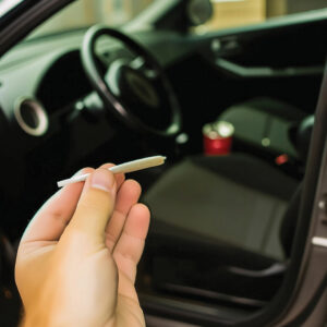 Driving while smoking cannabis joint. Marijuana. Legal regulatio
